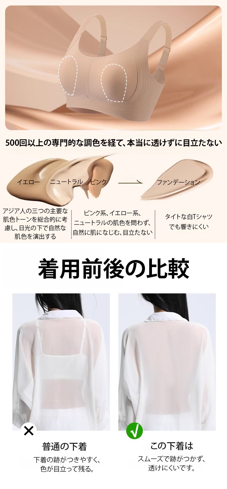 ● 独自設計の立体カップでバストをしっかり包み込み、ボリュームを自然に抑えてスッキリ美シルエットを実現します。